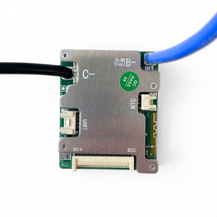 Before first use, the negative terminal of the battery must be connected to the BMS first. Then the balance connector, which is already connected to the individual battery cells, needs to be connected. Failure to follow this connection sequence may result in permanent damage to the BMS.